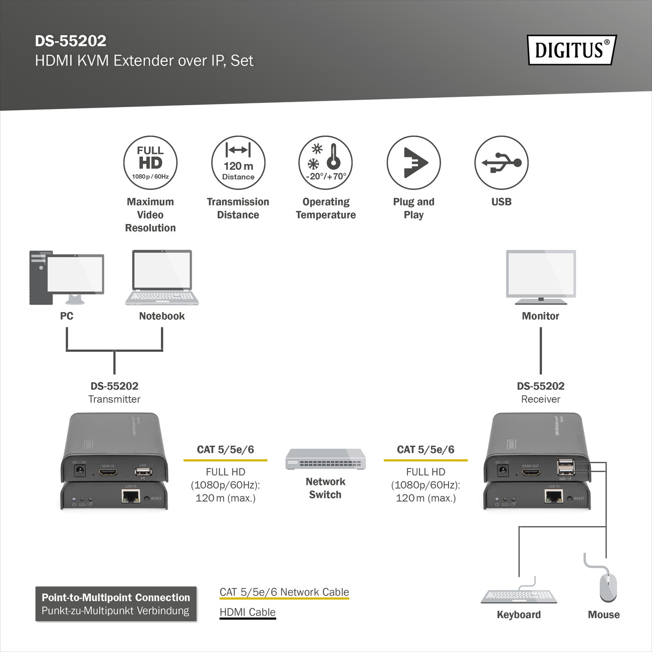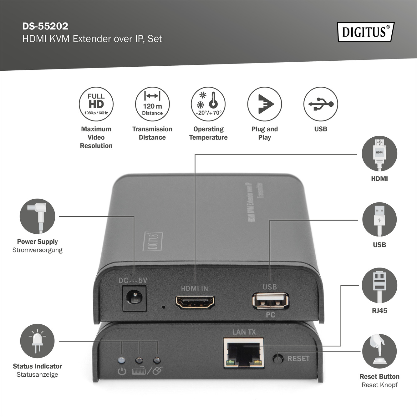 TovábbDIGITUS DS-55202 HDMI Full HD 120m extender szett