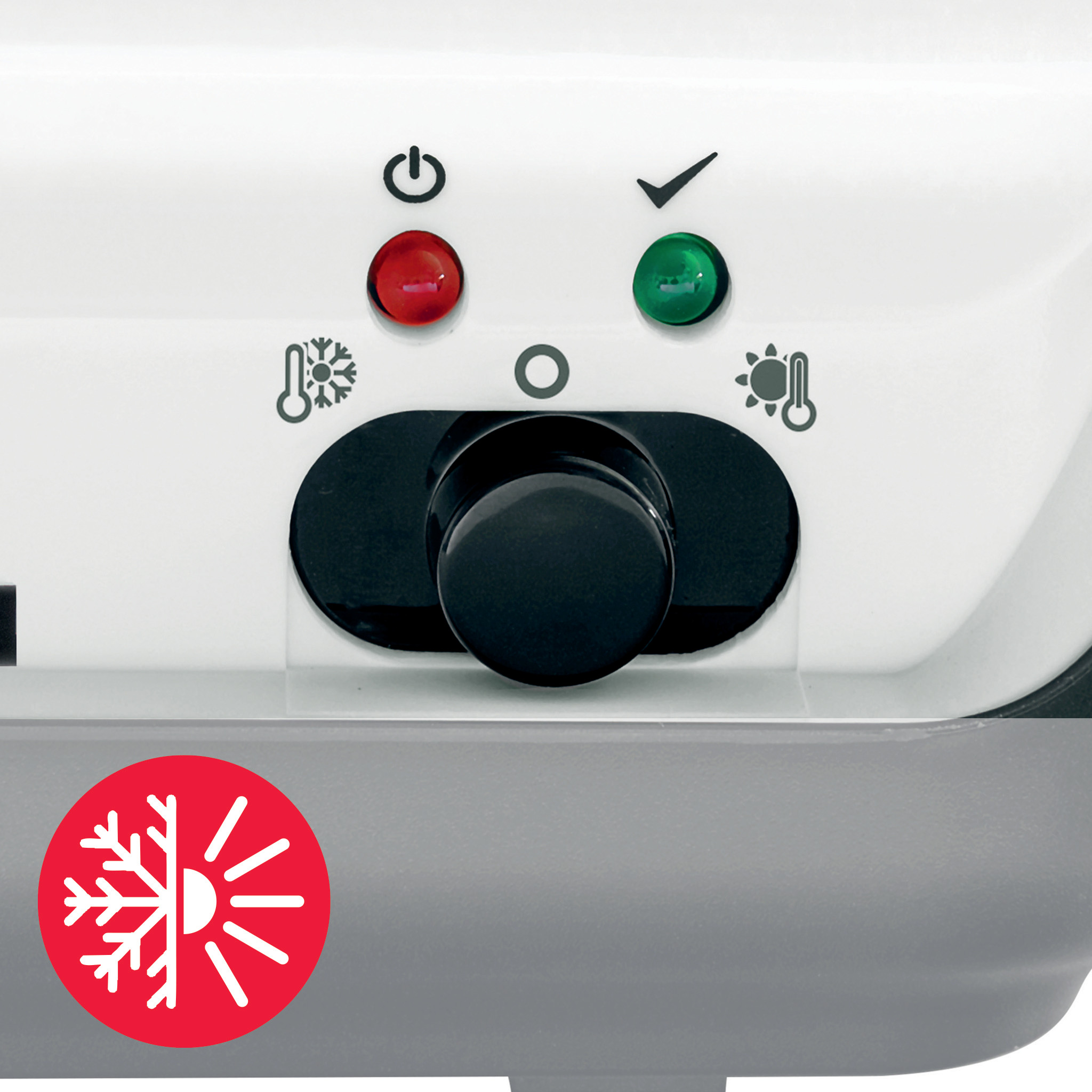 LED-lámpa, amely jelzi a készülék bekapcsolt (piros) és laminálásra kész állapotát (kék)