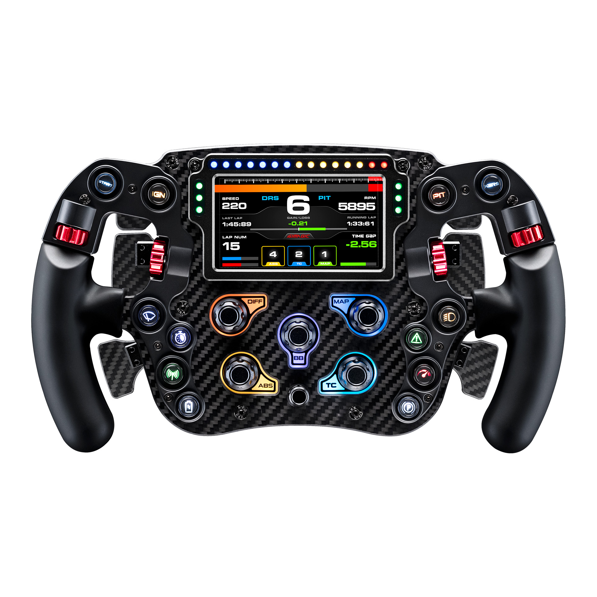 Az FX Pro a Simagic által eddig kifejlesztett legtöbb funkcióval rendelkező kormánykerék. A kormánykerék precíziós mérnöki megoldásokkal készült, 290 mm átmérőjű, 5 mm vastagságú szénszálas konstrukcióval, mindössze 1700 g súlyával, amely fokozott vezérlést és visszajelzést biztosít. Továbbá 12 darab testreszabható RGB gombbal, egy 4,3col méretű LCD kijelzővel rendelkezik és egy RevLED-et is tartalmaz, amely nagy segítséget nyújt a motor fordulatszámának ellenőrzésében.